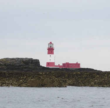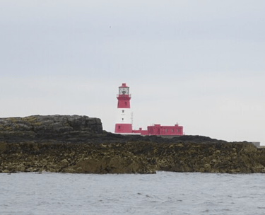 Lighthouse at Longstone: The upper window in the white ring was Grace Darling's bedroom, from which she saw the wreckage of the Forfarshire.