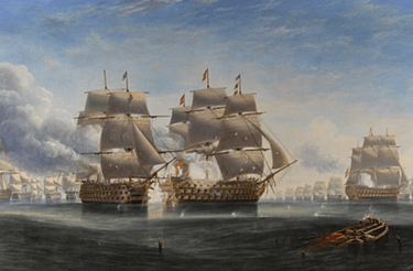 HMS Excellent with other ships during the battle at Cape St Vincent, 1797. Collingwood would serve four years in command of the ship.