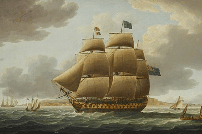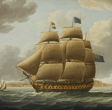 HMS Ville de Paris, the last ship Collingwood sailed on, seen here in a painting by Thomas Buttersworth.