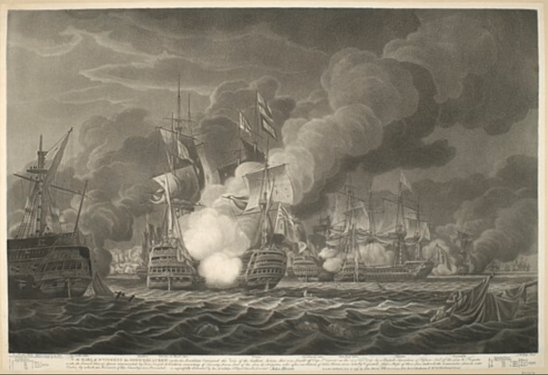In 1794, having left the Prince in January, Collingwood served in the same capacity to Bowyer aboard HMS Barfleur at the Battle of the Glorious First of June. During this fierce engagement on 1 June 1794, Collingwood caught Admiral Bowyer in his arms when the admiral's leg was shot away by enemy fire. The Barfleur suffered casualties of nine men killed and twenty-five wounded.